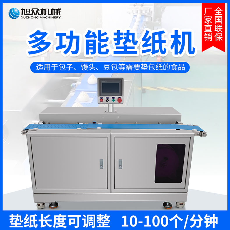 XZ-170多功能墊紙機,適用于大規模生產多功能墊紙機適用于包子、饅頭、豆包等需要墊包紙的食。伺服控制、墊紙長度可調整。高效墊紙告別人工旭眾牌ⅩZ-170多功能墊紙機適用于規模生產的食品企業制作包子機、饅頭等食品的自動墊包紙設備。